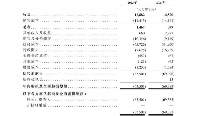 數(shù)據(jù)顯示,2023-2024年,該公司分別實(shí)現(xiàn)收入1288.2萬(wàn)元、1452萬(wàn)元;銷售成本分別約1141.5萬(wàn)元、1414.1萬(wàn)元。與收入形成鮮明對(duì)比,2023年,東方妍美錄得虧損凈額6350.1萬(wàn)元,2024年虧損凈額進(jìn)一步增至6938.3萬(wàn)元,兩年累計(jì)虧損近1.33億元。